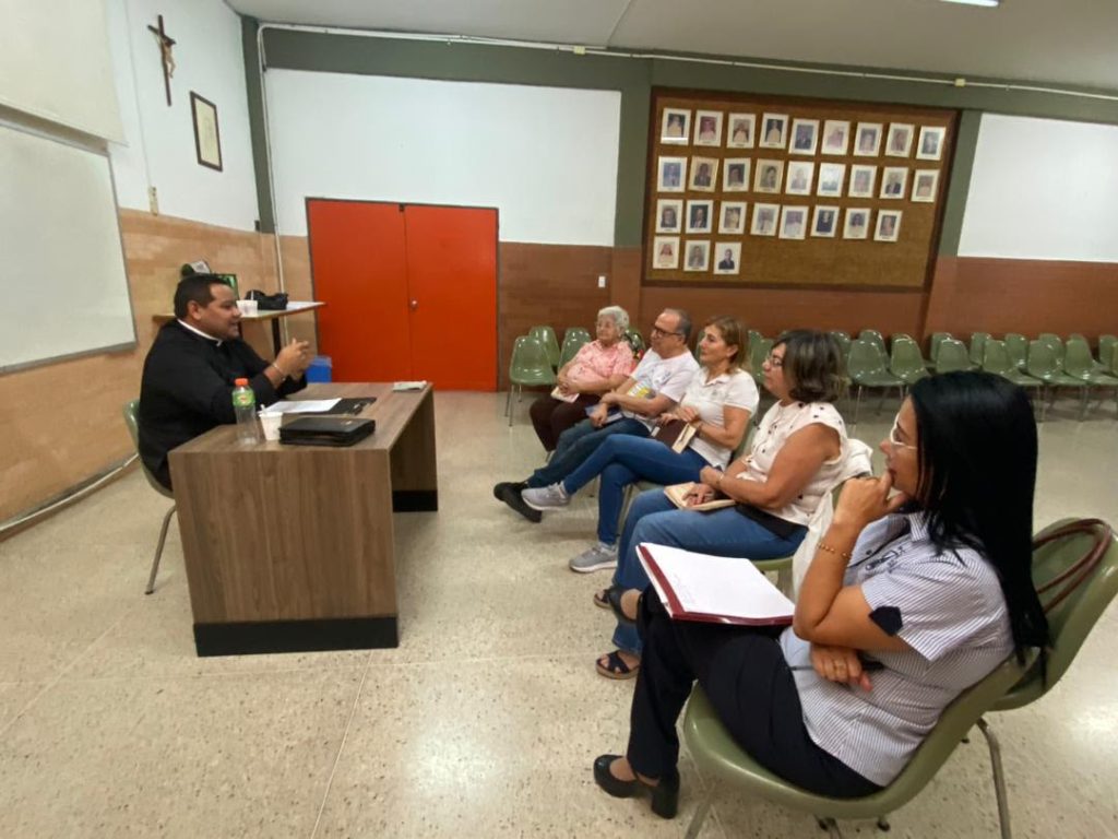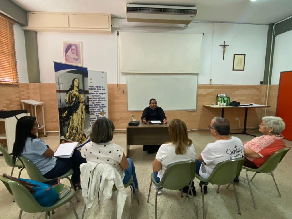 En este orden de ideas, también celebraron en el mes de marzo un encuentro con M. Mariana Guinand, Superiora Provincial, el dia 18 que era víspera a la celebración del Santo Patrono de la ciudad de Maracay, San José. M. Mariana, en Visita pastoral por el colegio, compartió durante una tarde la formación con el grupo Huellas. Se realizó lectura, profundización y conversatorio del documento: “Tres llamadas para un solo compromiso”. Además, se hizo mención al Papa León XIII: “El Laico como Transformador de la realidad social” y también se hizo referencia a la Encíclica Rerum Novarum (1891). Para un laico, este texto no es solo historia, es una hoja de ruta para el mundo del trabajo y la familia. La dignidad del trabajo, Justicia y Caridad y Misión Laical.