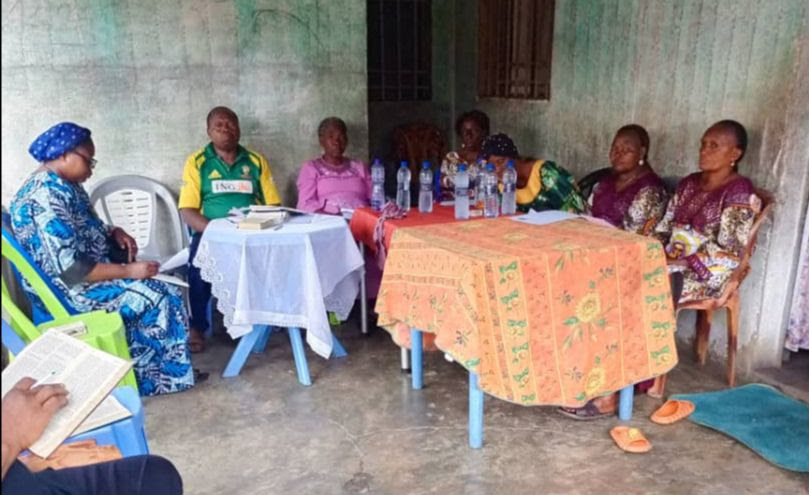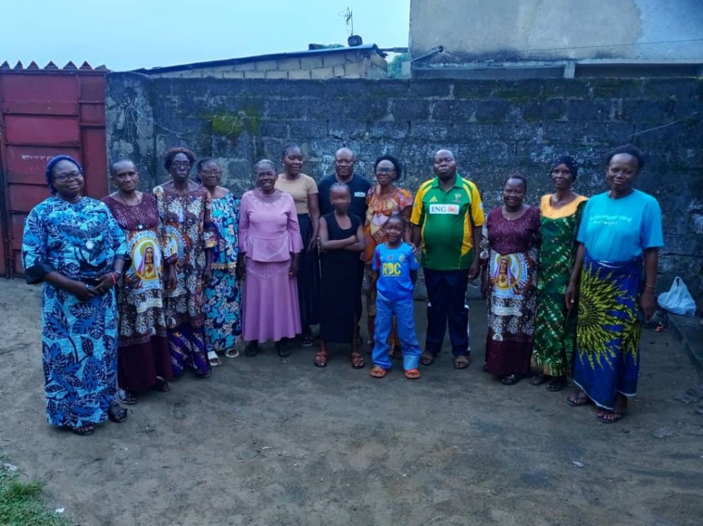 Los grupos de laicos van más allá de las reuniones organizadas. En muchos casos son un grupo de apoyo que se convierte en toda una red de sostenimiento. En la foto vemos una visita de oración y acompañamiento a la familia de Oscar, miembro africano del MLC, tras el fallecimiento de su madre en República Democrática del Congo.